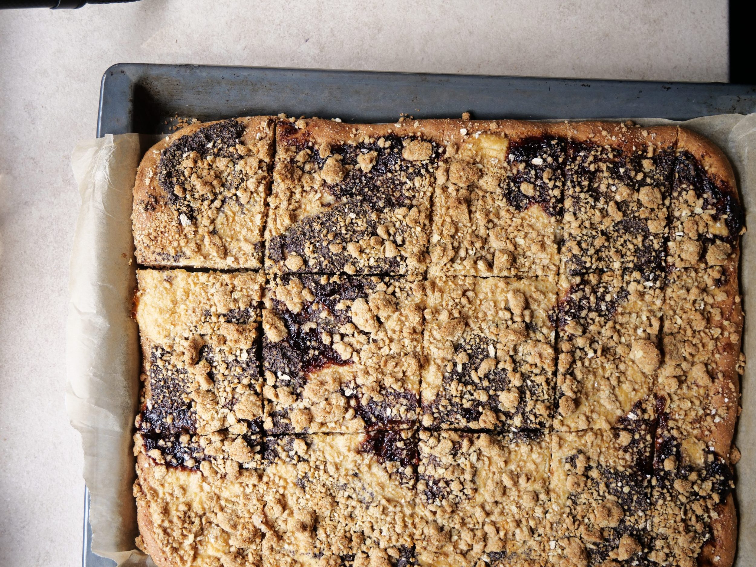 - Die Streusel locker und gleichmäßig darüberstreuen.