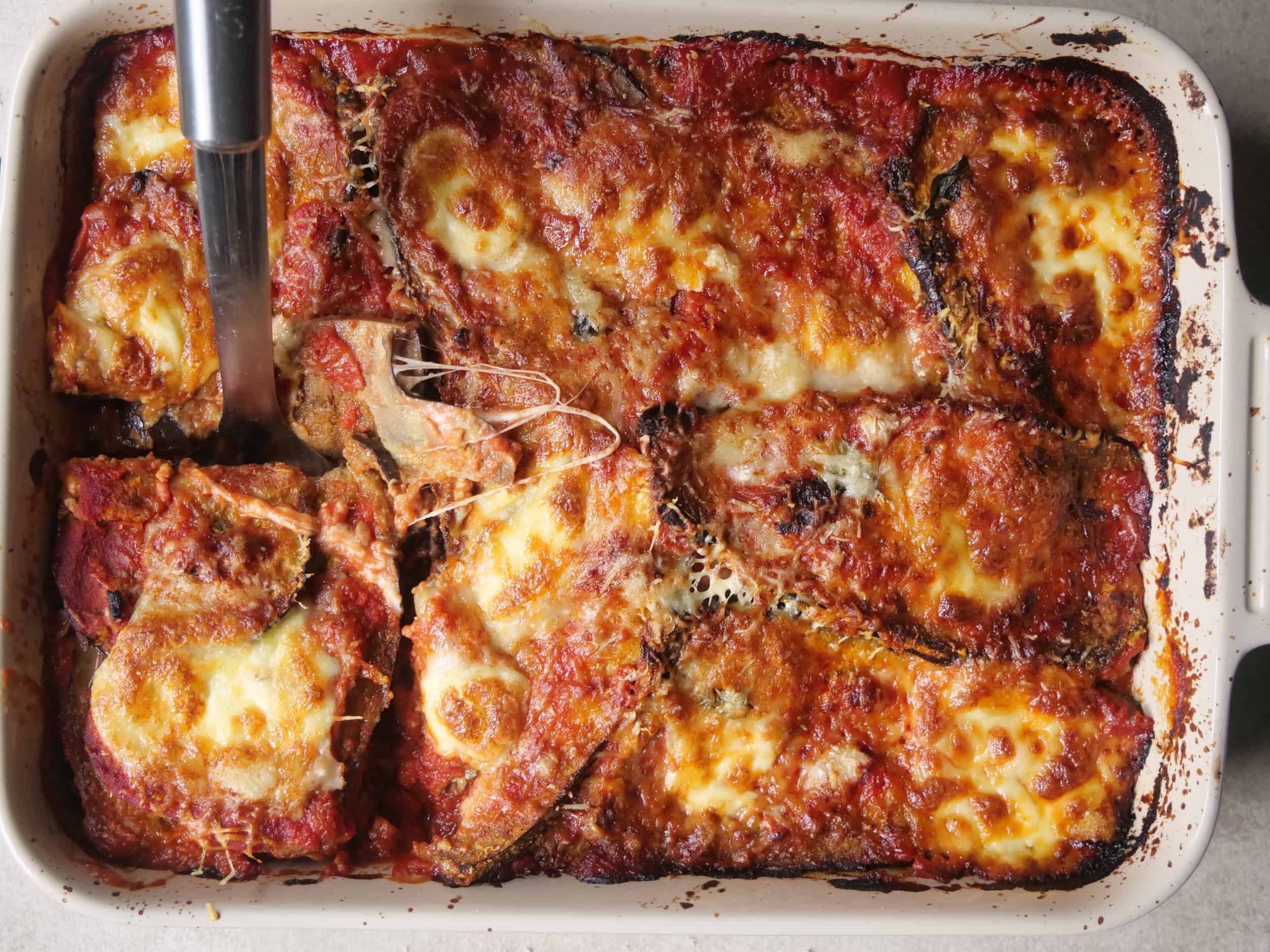 • Das macht so lan­ge bis ihr kei­ne Auber­gi­nen mehr habt. Am Ende den Auf­lauf mit Sau­ce und Käse abschlie­ßen.