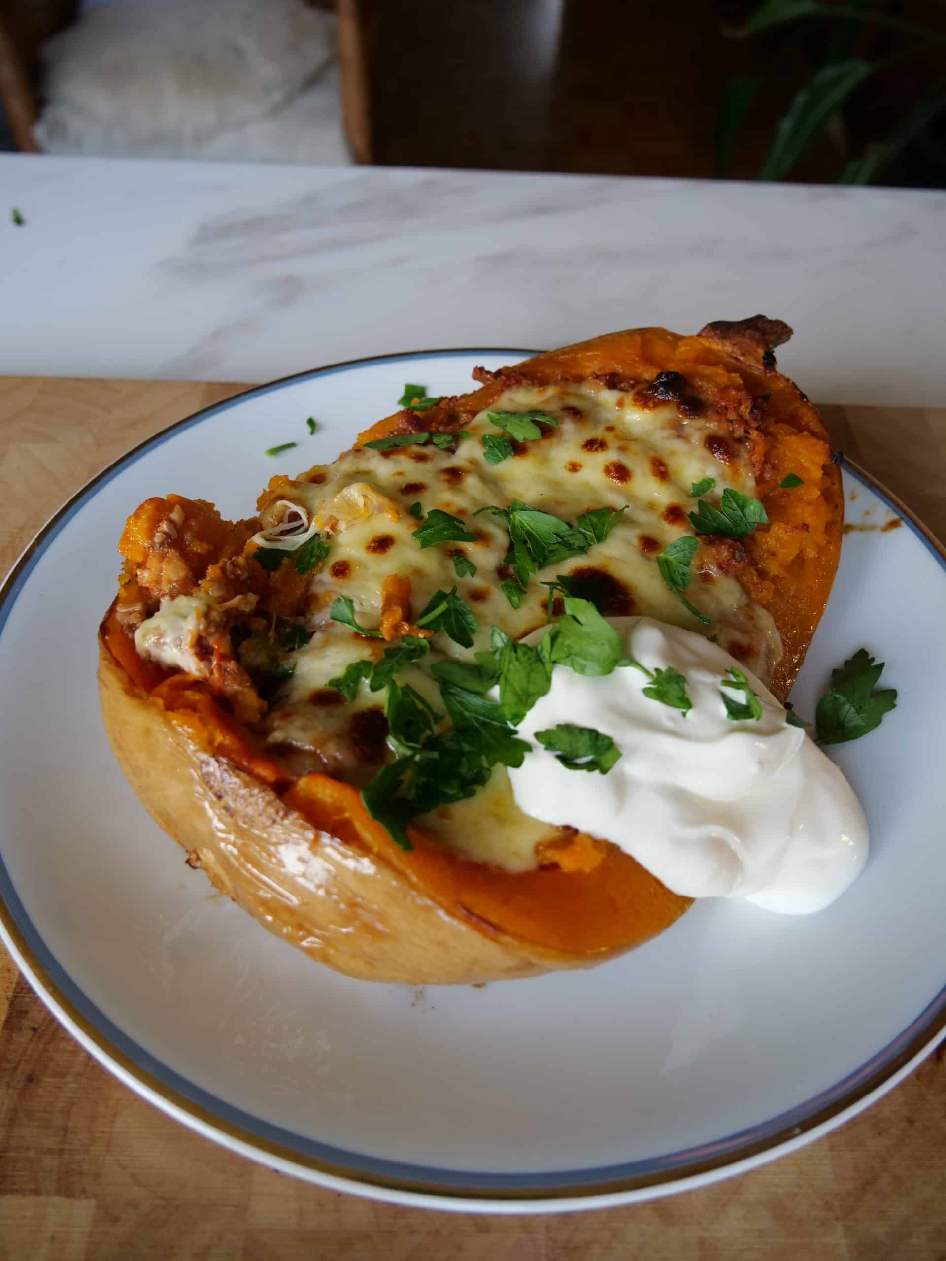 Herbstzeit ist Kürbis Zeit – Dieser Butternut hat´s wirklich drauf. Außen knusprig, innen butterweich – und obendrauf eine goldene Käsehaube, die zum Löffeln verführt. Schnell gemacht, super lecker und ein echter Hingucker. Mein liebstes Kürbisrezept zeig ich euch heute – perfekt für 2 Personen und ideal für gemütliche Herbstabende.