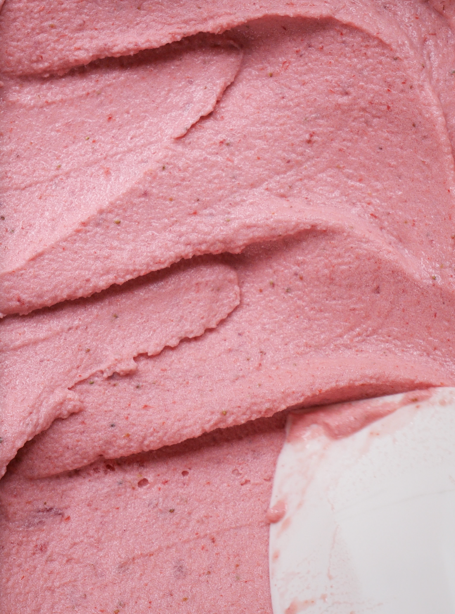 Das Eis schmeckt inten­siv nach Erd­bee­ren, leicht säu­er­lich und ange­nehm frisch – fast wie ein Sor­bet mit cre­mi­gem Finish. Der Schmant bringt eine sub­ti­le Joghurt­no­te mit und macht das Eis beson­ders aus­ge­wo­gen, ohne zu schwer zu sein. Eine Sache ist dabei aller­dings nicht zu unter­schät­zen – die Süße und Fruch­tig­keit der Erd­bee­ren. Am aller­bes­ten schme­cken regio­na­le und fri­sche Erd­bee­ren, ich per­sön­lich pflü­cke ger­ne frisch vom Feld und frie­re die Erd­bee­ren por­ti­ons­wei­se ein. So schmeckt mein Eis immer wun­der­bar fruch­tig und authen­tisch nach Erd­bee­ren.